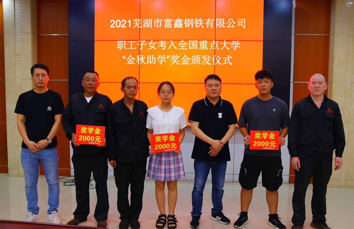 金秋助學。蕪湖市富鑫鋼鐵有限公司為2023年度考取高校的14名職工子女每人發(fā)放2000元助學資金。經統(tǒng)計,自公司職工子女...